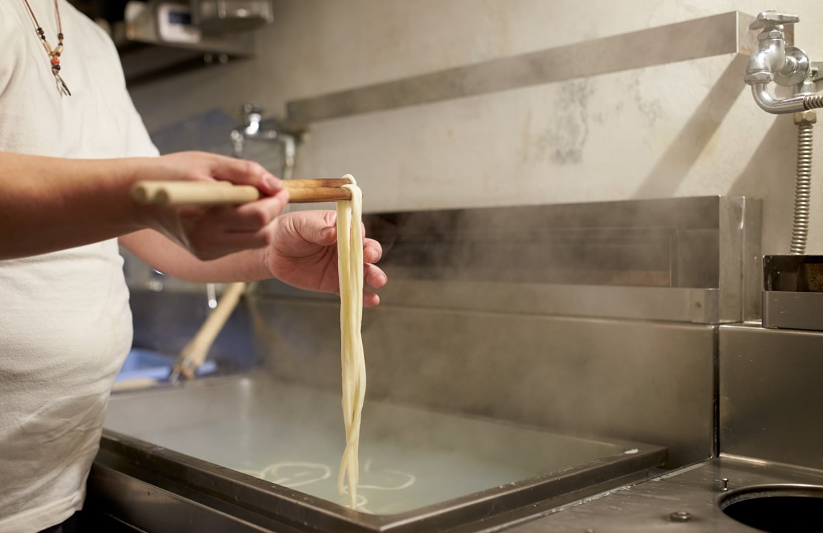 うどん AGATA では、ひとつひとつの仕込に手間ひまをかけて化学調味料を一切使わないことをポリシーにしたうどん作りをおこなっています。そして古くからの味、本当の味を大切にしながら日々新しい事に挑戦していくことを大事にしています。